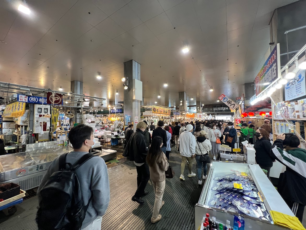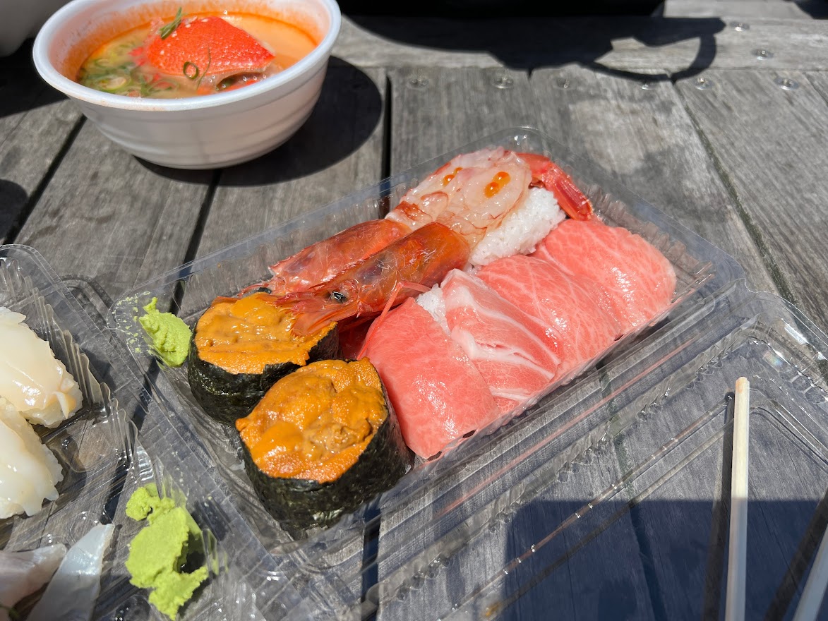 가라토시장은금토일 주말이나 공휴일에만 초밥이랑 회 등을 파는 포장마차?를 열어요