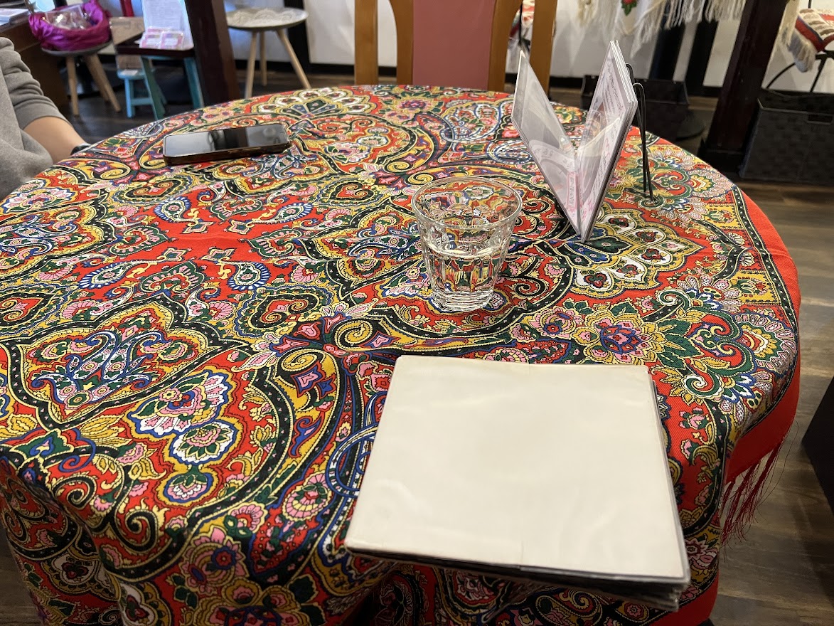 물 잔이 잘 안보일정도로 식탁보까지 화려해요