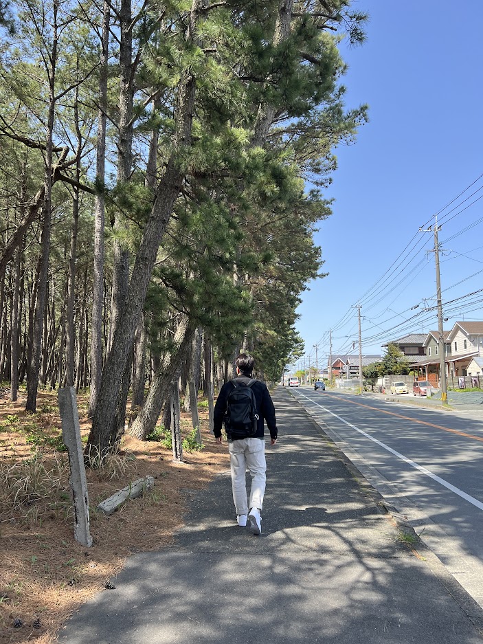 일자로 쭉 뻗은길, 끝에 보이는 바다서부터 계속 걸어왔어요