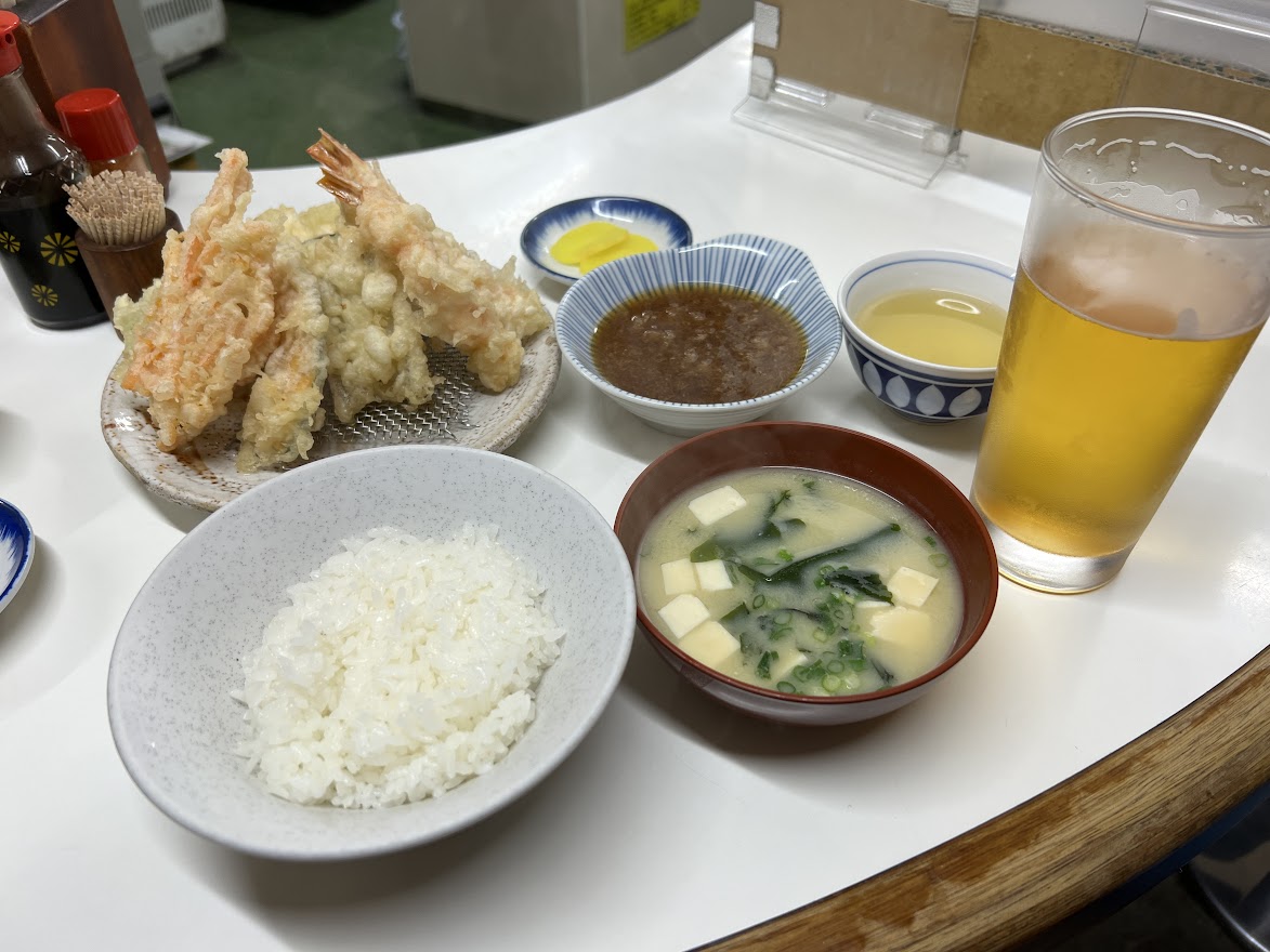 새우가 포함된 덴푸라 9품 정식으로 주문!